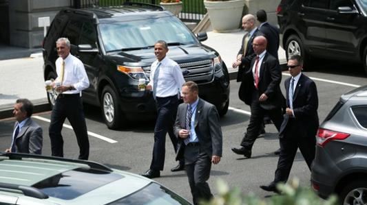 President Obama and agents, some of whom were assigned to Mr. Trump's detail, seen entering their vehicles without Mr. Trump, moments after Mr. Trump's last speech. (Photo credit: TheHill.com).