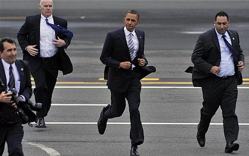 President Obama, two body guards, and a press core photographer running from the site of Trump's last speech. (Photo credit mountrantmore.com).